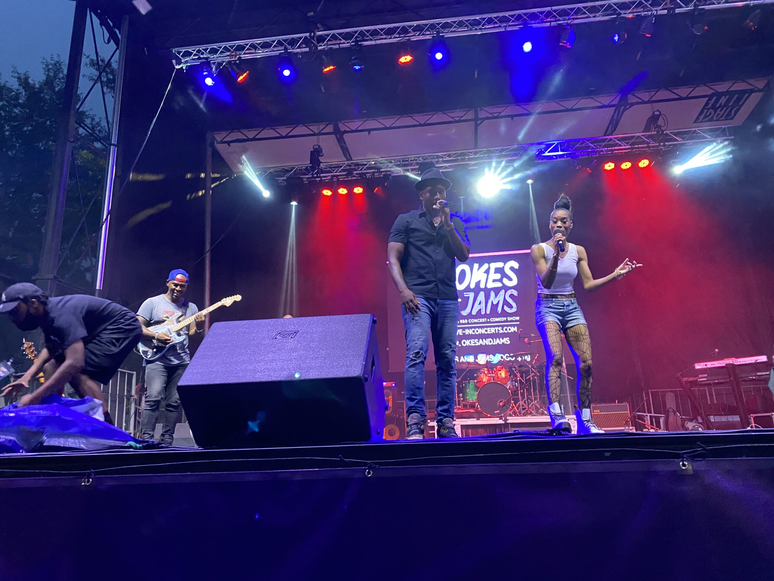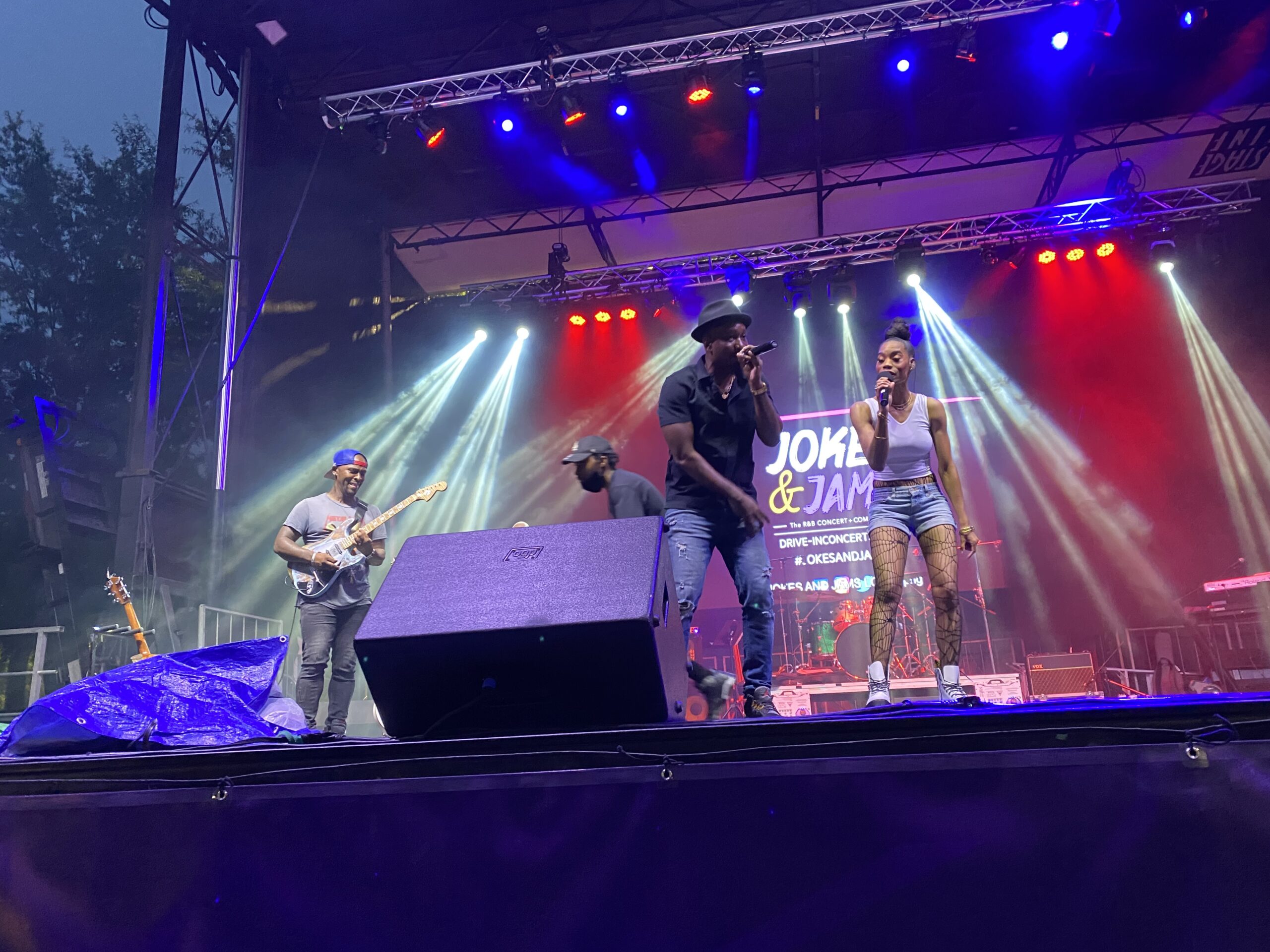 The Drive-In Concert Series, Jokes & Jams featured local award-winning talent. Comedian Marvin Dixon did a great job of engaging spectator participation, often asking the crowd to make noise by blowing their car horns. The artist line-up consisted of songstress, Eric Dawson and Algebra Blessett who looked absolutely amazing in her yellow tutu. The weather was quite soggy, but Algebra brought the sunshine to the stage. For those parked in the back, two large screens were erected so the crowd could see how dapper Anthony David looked as he and Algebra sung a romantic duet. Concert-goers didn’t seem to notice the drizzle as they were dancing in the empty parking spot next to their vehicles that they were allotted for social distancing measures. Blast from the past R&B singer Tony Terry closed the sold out show with his classic, “When I’m With You”.